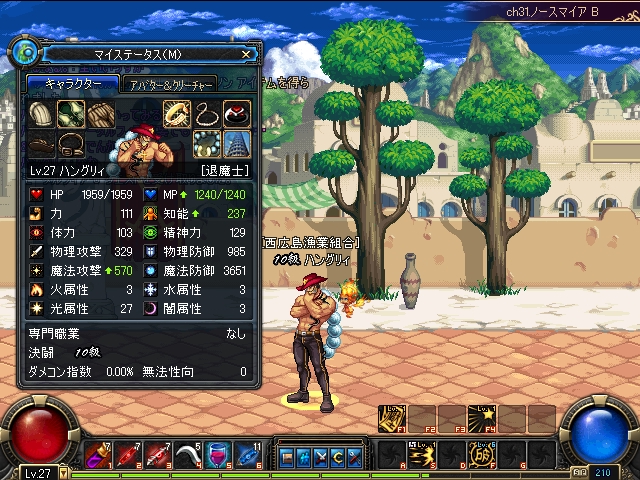 逆から読んでもマタイマ! スゲームキムキだけど布装備して 破! とか投げまくるよ。 七竜数珠っていう50エピ数珠の動画見たらLMを魔退魔に転向させたくてしょうがなかったんだけど、レテ代がもったいなすぎるぜということで新キャラで。 名前はこう、常に滾ってる感じを出したくてこのザマに。