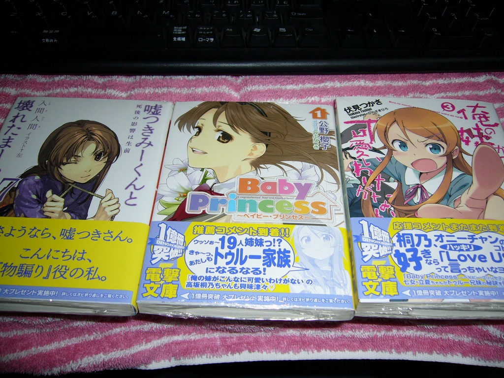 俺妹→みーまー→ベビプリの順で読むとして、帯に5月新刊情報が。 電波女と青春男2キタヨォ。 何て略すのが一般的なのかなこれは。 電春・・・かな。
